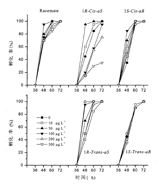 圖1:不同藥物對(duì)斑馬魚胚胎孵化率的影響