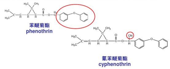 1972年英國Rothamsted試驗(yàn)站的Elliott博士在菊酸異丁基側(cè)鏈上以鹵素取代二甲基,與苯氧芐醇成功合成了氯菊酯(Permethrin),并于1977年商品化。其藥效比DDT高幾十倍,解決了兩個(gè)光不穩(wěn)定中心(菊酸側(cè)鏈的二甲基及醇部分的不飽和結(jié)構(gòu))的結(jié)構(gòu)問題,持效期長達(dá)7-10天,這是一次意義重大的突破。隨后Elliott在以上結(jié)構(gòu)中引入氰基相繼合成了氯氰菊酯和溴氰菊酯。